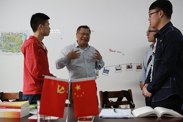温兴生在党员服务站与学生党员亲切交谈