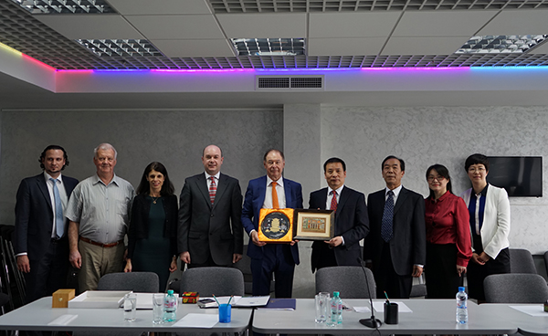 在莫斯科财经政法大学,代表团一行受到了校长阿里克西、第一副校长奥莱格的热烈欢迎。阿里克西校长在发言中表示,希望双方在师生互访、合作研究等领域展开务实合作。漆腊应详细介绍了我校的办学历史、办学规模、基础设施、学科特色、国际交流与合作等方面情况,他指出,双方在专业设置、学科建设等方面有诸多相似之处,对两校的交流与合作充满了信心和期待。经过充分交流,双方初步达成学生互换、教师交流、共同开展学术研究、合作举办学术会议等合作事项。当天下午,莫斯科财经政法大学举办了隆重的荣誉教授聘任和签约仪式,两位校长签订了学生交流协议,阿里克西校长向漆腊应校长颁发了莫斯科财经政法大学荣誉教授聘书。聘任仪式结束后,漆腊应发表了热情洋溢的演讲,并就学生留学、师生互访、科研合作以及中国高等教育发展与中国文化等问题,回答了多位教师和学生的提问,会场气氛热烈。代表团一行还与莫斯科财经政法大学商学院院长、国际交流处处长等进行了座谈交流,双方就暑期学生夏令营、教师互访等事宜进行了具体探讨。