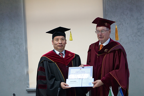 莫斯科财经政法大学阿里克西校长为漆腊应颁发荣誉教授聘书