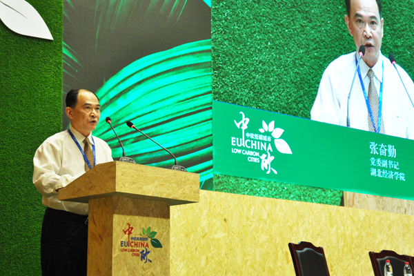 本网讯 6月28—29日,由中国发展和改革委员会、欧盟委员会和武汉市政府主办的首届中欧低碳城市会议在东湖国际会议中心举行。国家发改委、欧盟委员会、武汉市人民政府和欧盟6个城市、国内18个城市的政府官员以及应对气候变化领域相关专家、学者、企业代表250余人参加了会议。校党委副书记张奋勤应邀出席会议并主持全国碳市场建设行业领袖高峰论坛。