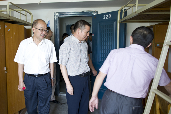 会后,漆腊应率队依次检查教学楼各项设施设备、学生宿舍环境、食堂饮食卫生等情况。