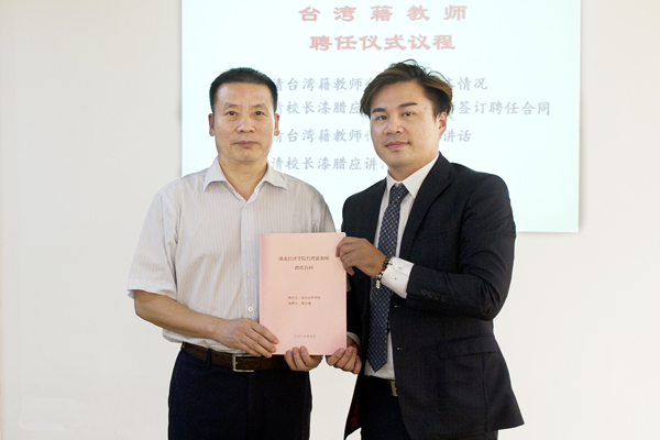 本网讯(通讯员 谷木荣 摄影 陶慧)9月22日,学校举行台湾籍教师聘任仪式。校长漆腊应分别与吴钰萍、黄志璿等六位台湾籍教师签订聘任合同。相关职能部门负责人及相关院系领导参加聘任仪式。副校长陈向军主持。