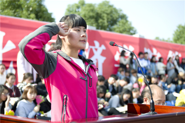 裁判员代表张俊和运动员代表余亚兰分别宣誓,表示表示尊重体育竞赛精神、遵守和服从体育竞赛纪律。
