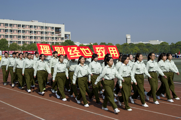 在运动员进行曲中,仪仗队与运动员方队入场。迈着整齐的步伐的国旗护卫队,英姿飒爽;身着白纱裙的鲜花队,充满青春活力;举着旗帜的彩旗队,挥舞着手中的旗,热情洋溢。各学院方阵按序入场,步伐铿锵,口号嘹亮,精神昂扬。