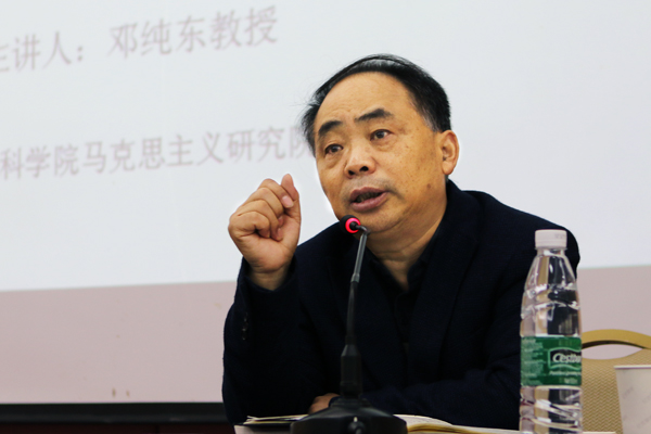 邓纯东的报告从两个问题展开。他认为,一方面,民主建设是关系中国特色社会主义发展成败的关键问题,而另一方面,民主是世界上含义与内容最混乱的一个概念。因此,有必要从“民主概念在当代的形象”、“民主的实质”、“认识西式民主的迷信与神话”、“社会主义民主理论与资产阶级民主理论的区别与联系”等六个方面,对民主进行条分缕析。
