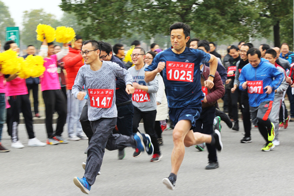 比赛环绕腾龙大道竞跑,起点为东大门国旗台,途经北大门、校医院、体育馆至校交通服务中心。723名自愿报名参赛教职工被分为男子青年组和中年组、女子青年组和中年组四组。