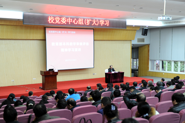 本网讯(记者 陶慧)1月5日,校党委中心组(扩大)开展学习活动,学习教育部本科教学审核评估精神。校党委委员、纪委委员, 中层正副职干部,经营性实体主要负责人,教学机构院属系主任(专业负责人)、综合办主任、教学秘书参加学习。党委副书记张奋勤主持。