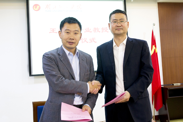 本网讯 4月26日,学校举行王学海产业教授聘任仪式。副校长何慧刚同人福医药集团董事长王学海教授签订聘任合同。人事处、科研处、研究生处、工商管理学院教师代表参加。