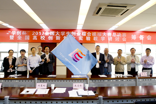 本网讯 5月4日,“学创杯”2017全国大学生创业综合模拟大赛总决赛暨全国高校创新创业实验教学研讨会筹备会在我校召开,高等学校国家级实验教学示范中心联席会经济与管理学科组组长戚桂杰、副组长任晓阳和张莉、顾问尤赤矶、秘书长周红刚,副校长何慧刚出席。