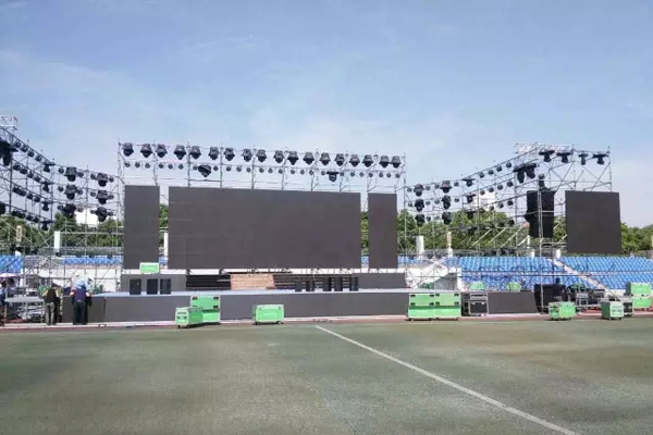 随后,记者来到西区操场。此时,工人们正在紧锣密鼓地搭建晚会舞台。一天之后,一场精彩的晚会将在这里上演。
