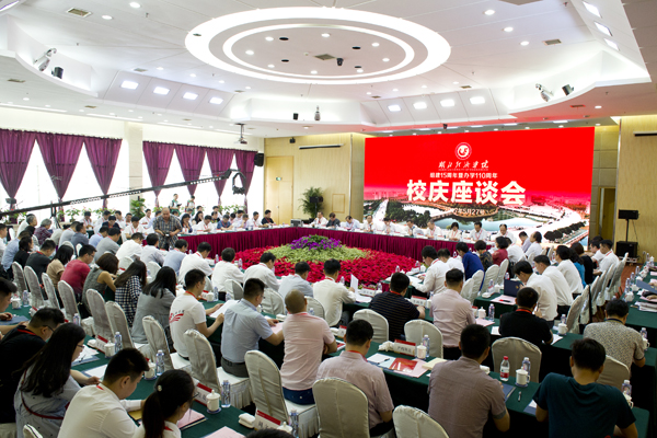 本网讯(记者 杨修杰 张钊 见习记者 赵莉丽 摄影 陶慧 彭骏)5月27日,我校组建15周年暨办学110周年校庆座谈会在国际学术交流中心举行。部分兄弟高校代表、原校领导代表、合作单位代表、校友代表以及师生代表参会。各方代表围绕“学术校庆、文化校庆、校友校庆、合作校庆”的主题,传承历史、弘扬精神、凝聚力量、立德树人,共庆校庆之喜事,共商高水平大学建设之大事。校党委书记温兴生致辞。校党委副书记张奋勤主持。