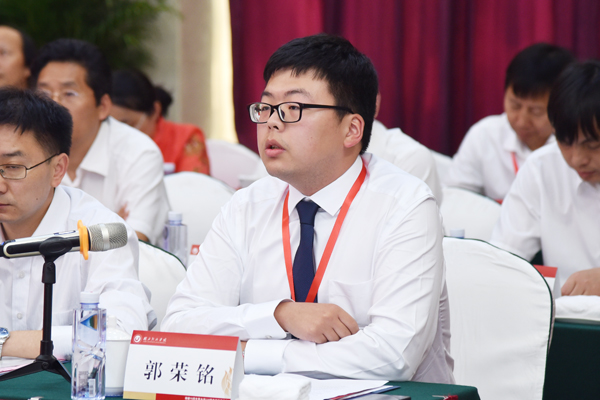 信息管理与统计学院2013级学生代表郭荣铭讲述了他作为学生干部的经历。作为一名中共党员,他在大学期间一直利用课余时间参与基层实践项目,他感谢学校将他培养成为一名省青马班学员,成为一名奔赴湖北基层的选调生。在任何重大的场合他都非常骄傲地说:“我是湖北经济学院的学生。”