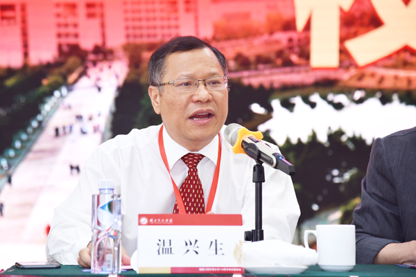 温兴生回顾了三校办学治校的历史,指出是我们弥足珍贵的精神财富,也是我们不断前行的强大动力,更是我们培育经院精神的生命基因。他总结15年以来经院的发展建设历程,学校抓住历史机遇,勇于改革创新,坚持特色办学,取得了办学条件、办学水平、办学层次的三大跨越。近5年来,学校发展的顶层设计更加科学合理,战略部署调整取得新的进展,人才培养质量稳步提高,学科发展水平和学术研究能力大幅提升,人才强校战略成效显著,现代大学治理架构基本形成。他结合当今国家发展背景提出,经院拥有巨大机遇也面临着严峻挑战,实现高水平财经大学办学目标仍需坚持社会需求导向,坚持创新协同路径,坚持人才强校战略,坚持特色兴校方针,坚持依法治校方略。全体经院人坚持务实重行、敢于担当,少说多干、真抓实干、埋头苦干,建成高水平财经大学的梦想就一定能早日实现。