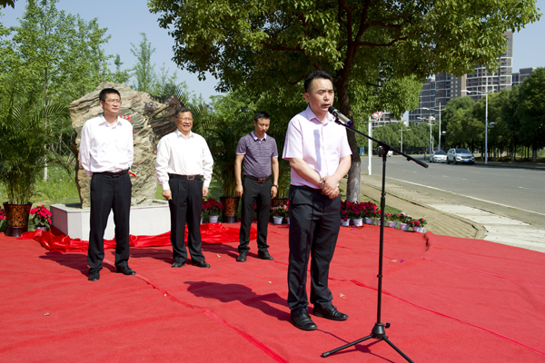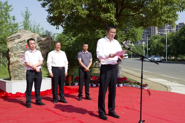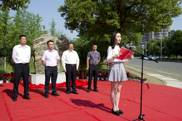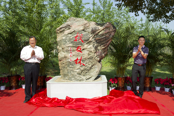 温兴生与王国平共同为校友林揭牌。
