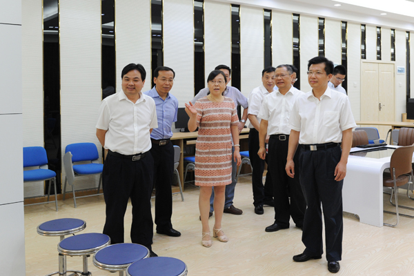 本网讯(记者 陶慧 摄影报道)8月9日,省教育厅厅长陶宏率省委高校工委副书记余学敏、省教育厅办公室主任何爱军、省教育厅教师管理处处长童静菊一行来我校调研。校党委书记温兴生,副校长陈向军,党委常委张以林陪同调研。学校办公室、人事处负责人参加。