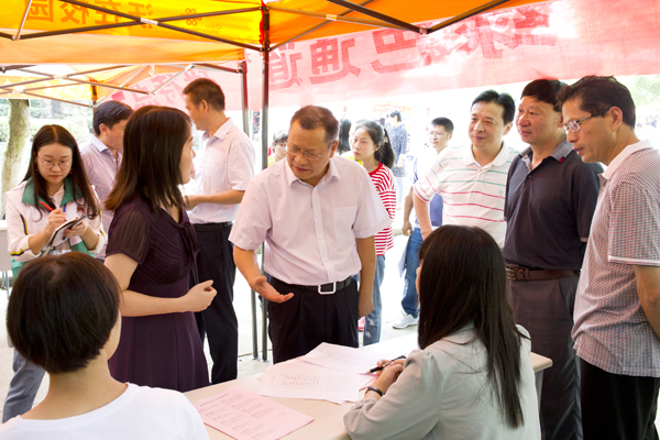 校领导带领相关部门负责人现场察看迎新工作情况,了解各单位迎新工作动态,看望报到的新生和家长,慰问参与迎新工作的师生员工。