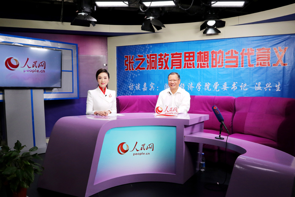 经过精心准备,当天,温兴生来到人民网湖北频道,接受了现场采访和录制。他主要从探讨张之洞教育思想遗产的背景、张之洞与湖北经济学院的历史渊源、张之洞教育思想对当下办学的启示、如何继承和发扬张之洞教育思想遗产等方面进行阐述。