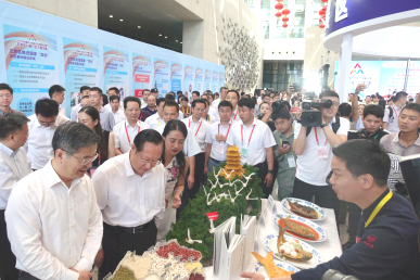 邹志平大师工作室展出武昌鱼宴、花色冷拼、冬瓜雕刻的“随州曾侯乙编钟”、用湖北各地特色粮食组拼的“湖北地图”以及邹志平著作《中国莲藕菜》,现场表演烹饪绝技绝活,得到王晓东、陈一新等领导的肯定和赞赏。