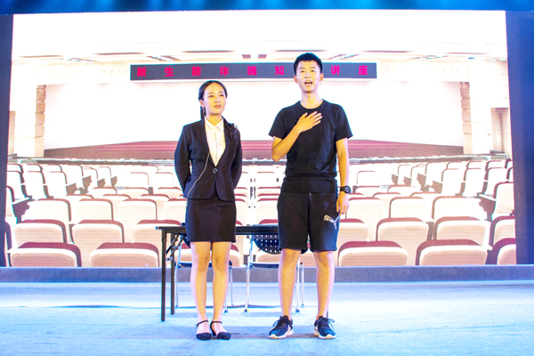 国旗护卫队和大学生艺术团声乐队带来的《军歌嘹亮》拉开序幕。伴随着飘扬的五星红旗和声乐队员的歌声,27名国护队员列队,齐步,踏乐,迎国旗,展现了军人的庄严。国护队员郝寒腊表示:“这是我们第一次站在迎新晚会舞台上,大家齐心协力用了一个月时间刻苦训练,希望将国护队的风采展现给新生。”朗诵表演《致敬经院》,表演者声情并茂的朗诵,慷慨激昂的表演,一字一句间缓缓讲述经院悠久而厚重的历史。“经院,带不走的只有你!”歌曲《经院》唱出了经院学子深深的爱校情。小品《如此诈骗》趣味而生动的演出,引发现场阵阵欢笑,同时也教导新生们谨防诈骗。群口相声《七嘴八舌话经院》妙语连珠,“不负金融不负卿”、“会人会语,共济天下”、“忆年四季,英为有你”……来自各学院的团委、学生会成员们,喊出响亮的口号,为各学院代言,同时带大家感受和体验“走入经院”“吃在经院”“乐在经院”“学在经院”“住在经院”,趣味横生,掀起晚会热潮,现场掌声不断。