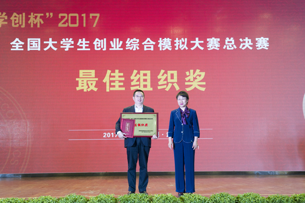 本网讯(特约记者 索凯峰 摄影 陶慧)10月21日至22日,“学创杯”2017全国大学生创业综合模拟大赛总决赛暨全国高校创新创业实验教学研讨会在我校举行。102支代表队历时半年从全国近万支参赛队伍中脱颖而出进入总决赛,经过“软件模拟经营”和“创业策划书答辩”终极比拼,福州大学、河北金融学院等高校的10支参赛队伍获特等奖,并荣膺“中国大学生学创之星”殊荣。我校“古风醇”学生团队获总决赛一等奖和创业计划书金奖,毛志斌副教授被评为“十佳”创新创业导师,学校获最佳组织奖。