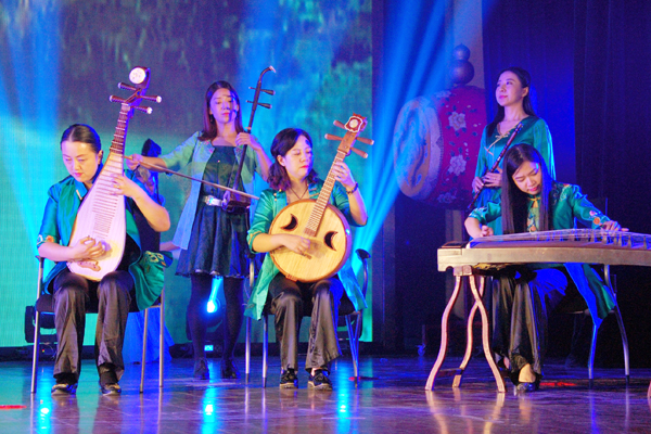 晚会以鼓乐《高山流水长》开场,两位男演员分饰伯牙与钟子期,一个头戴斗笠,另一个首绾发髻,他们相对而立,时而引吭高歌,时而眼神交流,表达着互为知音的惺惺相惜。打击乐对奏《幸福》表演,有条不紊地在各种打击乐器中来回变换,展示出高超的技艺,奏响美妙动听的旋律。二胡独奏《梁祝》将观众带入浪漫的爱情世界,男女对舞,与银幕上流光溢彩的蝴蝶背景相呼应,与悠扬的二胡声相应喝,再现了两人相识相恋相知的过程,全场寂静无声,在场观众专注享受精彩表演。琵琶二重奏《彝族欢歌》将晚会推向高潮。悠扬的彝族风情音乐、大屏幕上五彩斑斓的彝族配饰和舞蹈演员们曼妙的舞姿,将观众们带入彝族歌舞欢庆的场景中。
