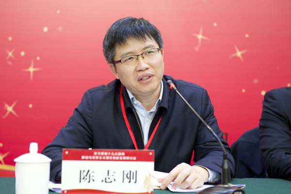中国社会科学院马克思主义中国化部副主任陈志刚在开幕式上致辞,他认为学习宣传贯彻十九大精神是当前一项重要的政治任务,提出十九大报告中的“新时代”“新思想”“新目标”“新矛盾”等“新”内容,反映了马克思主义理论与中国实际相结合“第三次飞跃”的新成果,是中国特色社会主义理论体系的集大成者,值得学者们重点关注和深入研究。