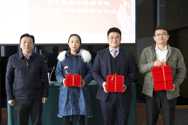 本网讯 12月10日,学校举行第三期青年教师专业基本能力培训班结业仪式。校党委书记温兴生、副校长陈向军、党委常委张以林出席,有关职能部门负责人、部分优秀教师代表和2017年全体新进教师、辅导员、教学管理人员参加。
