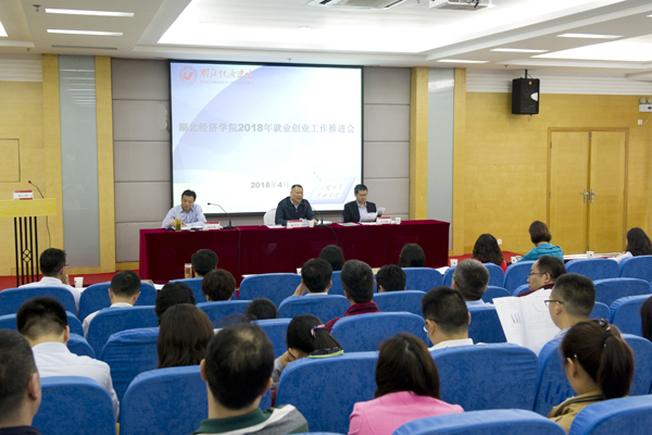 经济与环境资源学院党委书记聂春田、信息管理与统计学院党委书记俞红、旅游与酒店管理学院会展Q1341班班主任田秋菊、工商管理学院辅导员周珊分享了学生就业创业工作的做法和经验。学生工作处处长、大学生就业创业指导中心主任宋健就推进2018年就业创业工作进行部署。