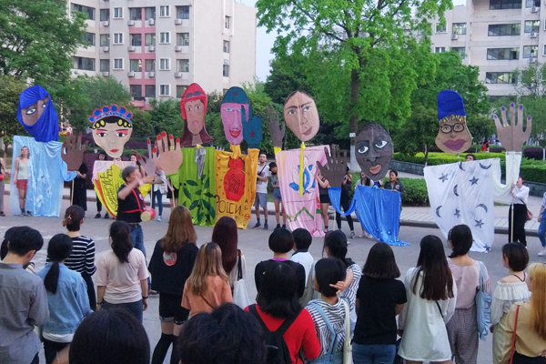 德方师生与艺术设计学院师生开展集中创作,以中国“古丝绸之路”所经过的国家为线索,创作了代表中国、印度、巴基斯坦、阿拉伯国家、欧洲国家、非洲国家的人像面具作品,同时创作歌曲和舞蹈。4月3日,创作成果以校内巡演的形式展示,从中兴广场开始,途经西区学生宿舍、北大门、东区学生宿舍,再回到中兴广场,引起广大师生关注。