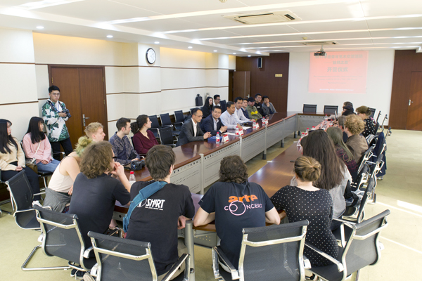 本网讯 3月28日至4月4日,中德青年艺术交流活动在我校开展。3月28日,开营仪式上,副校长何慧刚出席并讲话,德方师生一行17人、艺术设计学院师生代表参加。