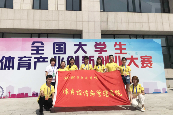 本网讯( 通讯员 田砚婷 张壮)5月31日,2018年全国大学生体育产业创新创业大赛在天津体育学院闭幕,我校体育经济与管理学院学生田砚婷、刘改改、廖冠豪、毛德盛组建的“Hey-Sky飞行纪”队获一等奖,张壮、王云、杨菲菲、何文婷组建的“Mr.Mara马拉英雄”队获二等奖。领队为兰自力,指导老师为李燕燕。
