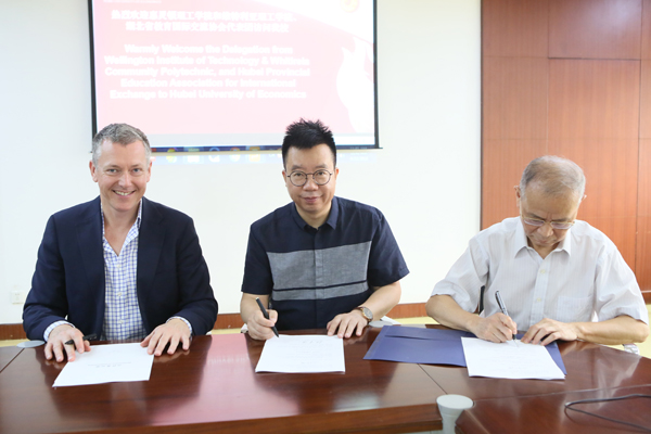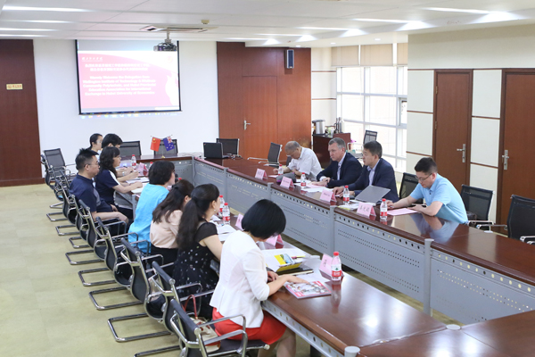 本网讯 6月22日,新西兰惠灵顿理工学院和维特利亚理工学院副校长Mark Johnston一行和湖北省教育国际交流协会代表团访问我校。党委书记温兴生会见代表团,党委副书记刘大洪出席两校合作交流洽谈会,湖北经济学院法商学院、艺术设计学院、旅游与酒店管理学院、国际交流与合作处相关负责人参会。