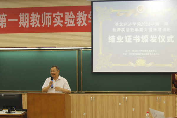 温兴生对老师们经历了一个难忘、开心、高质量的培训表示祝贺。他说这是本月第三次造访实验教学中心,每次来的心情都不一样。第一次是6月8日,那时是带着急切的心情,因为实验教学中心是专家们关注的重点;第二次是6月11日,那时是带着平和的心情,因为专家过来参观,心里是有底的;今天是第三次,带着欣慰的心情参加结业仪式。实验教学在人才培养过程中具有特别重要的意义,学校对实验教学中心建设十分重视,这次培训是实验教学中心落实评估整改迈出的坚实一步。
