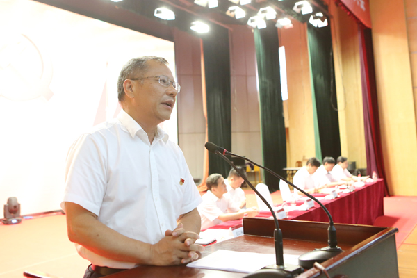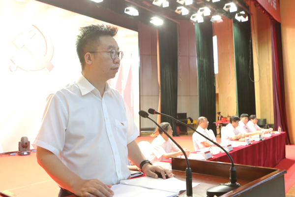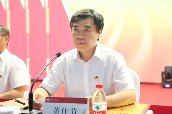 温兴生发表讲话。他代表学校党委向受到表彰的优秀共产党员、优秀党务工作者和先进基层党组织表示热烈祝贺,向全校各级党组织和辛勤工作在教学、科研、管理、后勤等各条战线上的全体共产党员和离退休老党员、学生党员,致以节日的问候。