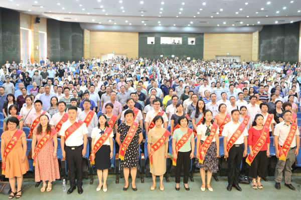 党委副书记刘大洪宣读关于表彰2016-2018年度优秀共产党员、优秀党务工作者和先进基层党组织的决定,授予陶珍生等64人“教职工优秀共产党员”称号,黄思婷等20人“学生优秀共产党员”称号,刘薇等10人“优秀党务工作者”称号,外国语学院党委等8个党组织“先进基层党组织”称号。