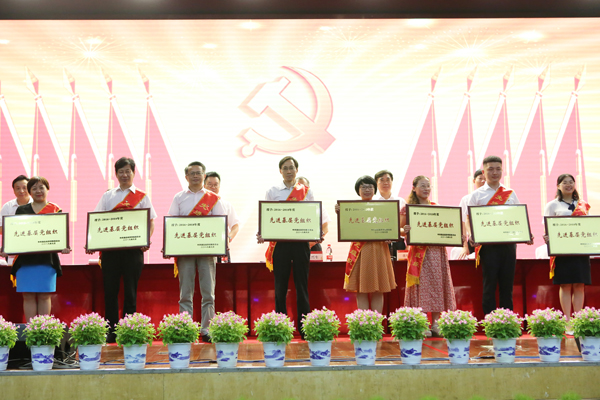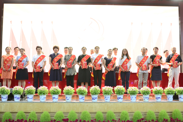 校领导分别为先进基层党组织颁发奖牌,为优秀党务工作者、优秀共产党员代表颁发荣誉证书。