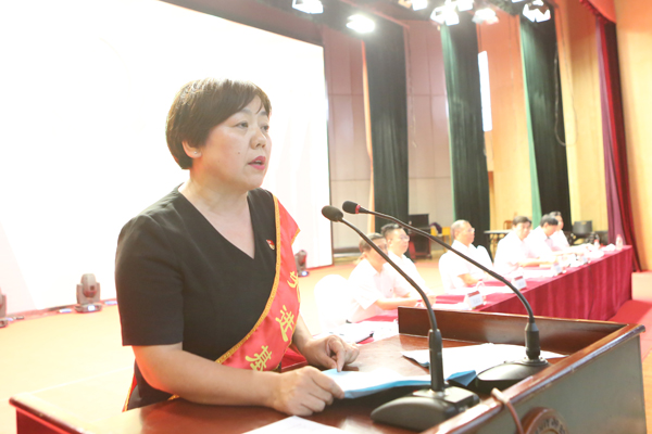 优秀党务工作者代表、财政与公共管理学院“双带头人”教师党支部书记吕丽娜发言,她从三个方面分享了自己的工作体会:教育管理从严,提升支部政治领导力;融合社会从实,提升支部发展推动力;服务群众从真,提升支部凝聚力。