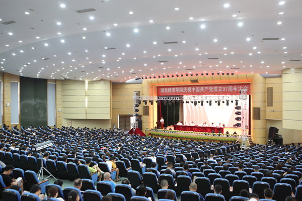 本网讯(见习记者 余冰洁 郭翰林 摄影 陶慧 王赫兰)6月29日,庆祝中国共产党成立97周年大会在大学生活动中心一号报告厅举行。校领导温兴生、董仕节、刘大洪、鲁晓成、吴显富、陈向军、张以林出席。退休老党员代表、全体教职工党员,学生党员代表、入党积极分子代表等1500余人与会。党委副书记、校长董仕节主持。