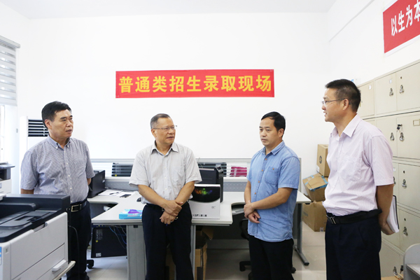 本网讯(记者 陶慧 摄影报道)7月19日, 校党委书记温兴生、校长董仕节、副校长何慧刚先后来到招生录取现场、法商学院综合实验实训楼工地、校园水电中心、苗圃中心等地,看望慰问暑期坚守岗位的教职工,对顶着酷暑坚守一线的工作人员表示亲切慰问,并现场了解招生录取、基建维修项目等各项暑期工作进展情况。学校办公室、后勤集团、教务处、基建维修处等部门负责人陪同。
