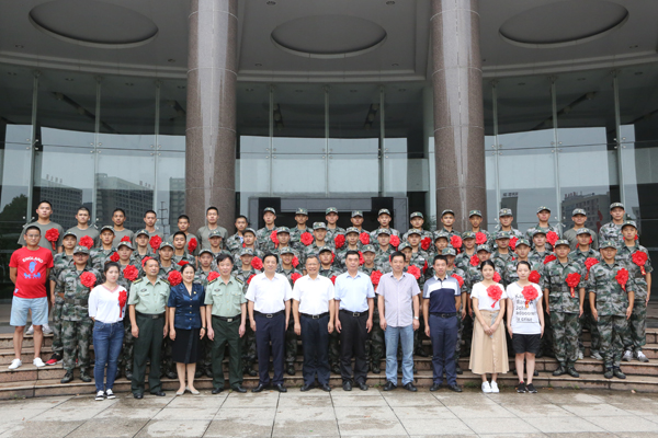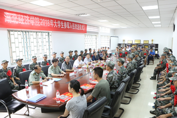 本网讯 9月6日,学校欢送58名参军入伍大学生。党委书记温兴生、校长董仕节接见入伍学生并合影。党委常委张以林出席欢送仪式。武装部、学工处、教务处、宣传部、校团委等部门负责人和各学院相关负责人参加。