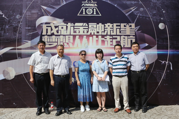 在金融学院新生入学纪念照片拍摄处,温兴生、董仕节同新生及家长合影留念。
