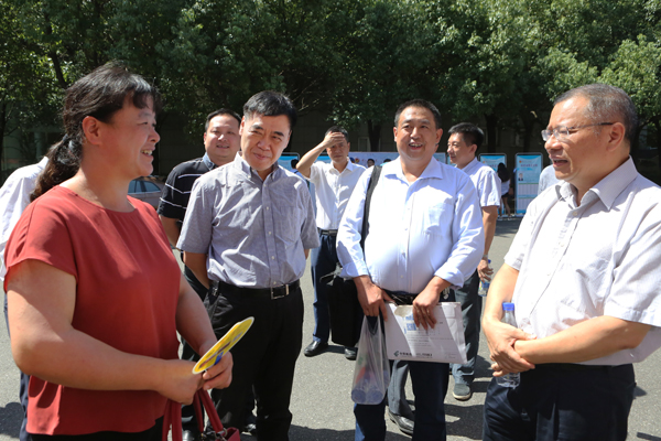 校党委书记温兴生、校长董仕节、副校长何慧刚、党委常委张以林带领相关部门负责人现场察看迎新工作情况,了解各单位迎新工作动态,看望报到的新生和家长,慰问参与迎新工作的师生员工。