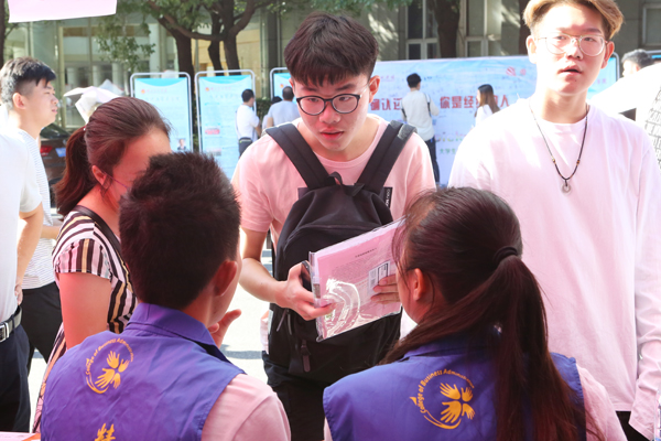 在经济与贸易学院迎新接待处,温兴生向新生家长了解报到情况后说:“学校环境优美,学生学习和生活条件好,老师们教书育人认真负责,放心吧,孩子会在经院成长成才。”