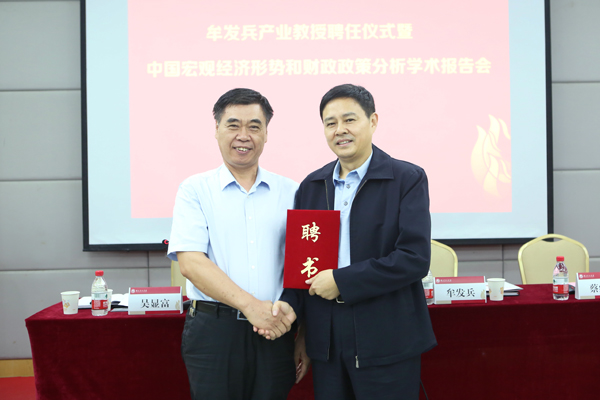 聘任仪式后,牟发兵教授为师生作题为“中国宏观经济形势和财政政策分析”的学术报告。