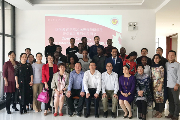 本网讯 10月11日,学校举行2018级留学生开学典礼暨师生见面会。副校长何慧刚,教务处、学工处、经济与贸易学院、新闻与传播学院、外国语学院负责人,2018级全体任课教师、留学生参加。