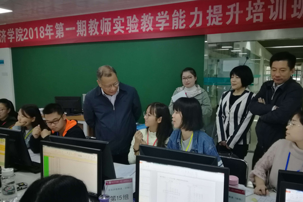 温兴生查看了学生出勤、教师到岗、实验教材及教学设备情况,逐一走访了课堂,看望了师生。他与课程负责人徐亚文老师进行深入交流,对实验教学中心充分的教学准备和充实的课堂内容给予赞许和鼓励,并表示让学生通过22课时的学习,了解企业经营管理,让该课程成为我校特色。