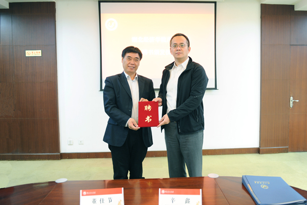 董仕节为阿里巴巴集团阿里云中西区总经理辛鑫,腾讯大楚网新闻中心总监兼企鹅新媒体学院院长谈海亮,湖北广电长江新媒体集团副总裁李鹏,武汉斗鱼网络科技有限公司党委书记、副总裁袁刚,武汉光谷创意产业基地总经理董思艺、武汉来画科技文化有限公司总经理刘佳利、武汉麦塔威科技有限公司总经理蔡新元颁发产业教授聘书,何慧刚与他们签订战略合作备忘录。