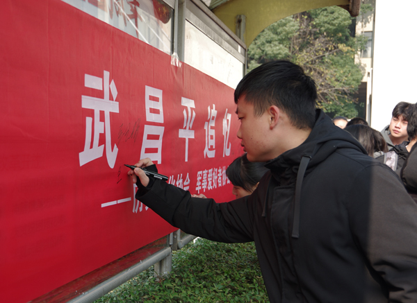 本网讯(记者 余冰洁 见习记者 杜天豪 谈姗姗 摄影 江章钧 钟贤毅 黄实 赵智威)12月13日,第五个国家公祭日,由校团委、武装部主办,军事爱好者协会、历史文化协会承办的国家公祭日纪念活动在一粟堂广场举行,活动主题为“丁丑八十一,武昌平追忆”。