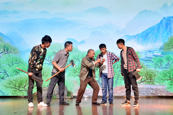 《桃花开了》以精准扶贫为背景展开,分为六场。桃花垄村因诸多历史遗留问题,一直是县里的贫困村,大多数青壮年外出谋生。女主人公桃花大学毕业考取公务员后放弃到农务局的工作,主动请缨回到家乡任书记,希望带领家乡人民脱贫致富。一上任,她就碰到村民逼还工资。同时,桃花母亲坚决反对她回村,与贪图小利的村民花猴子设套,一心要赶走桃花。但桃花与村长齐心协力,克服重重困难,使桃花村人民过上了幸福的生活,为美丽乡村再树样板。现场精彩演出引发观众阵阵掌声,桃花在选择去与留过程中细腻的表演将表演推向高潮,演出在《桃花朵朵开》的合唱中完美落幕。