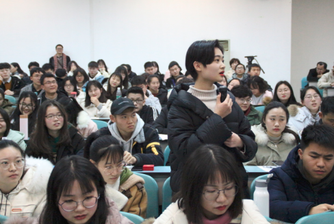温兴生讲授的主题是《中国方位:我们的新时代》。什么是历史方位?面对温兴生的提问,很多学生感到迷茫。为了让同学们更好地理解这一概念,温兴生用最近热映的《流浪地球》情节把学生带入专题,这部电影表达了中国人独有的方位感和未来感。温兴生这一生动形象地讲解顿时让同学们方位感满满。接着温兴生从历史和现实——5000年历史中的当代中国;理论和实践——社会主义500年中的当代中国;国内和国际——民族复兴170年中的当代中国三个维度来帮助同学们把握中国的历史方位。